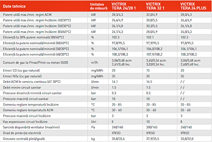 Gama VICTRIX TERA ErP ofera toate avantajele condensarii in conditiile unei utilizari deosebit de simple. Promovand tehnologia cea mai compatibila cu Directivele Europene si cu scopul de a reduce consumul de energie, noua gama de centrale termice se afirma ca o solutie eficienta pentru multe instalatii noi dar si pentru inlocuirea aparatelor existente.
