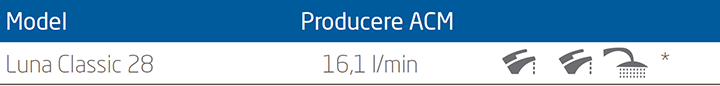 *considerând un debit de aproximativ 8 l/min pentru duș și un debit de 4 l/min ACM.
