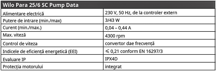 | 3 – Pompă de circulație Wilo Para 25/6 SC |