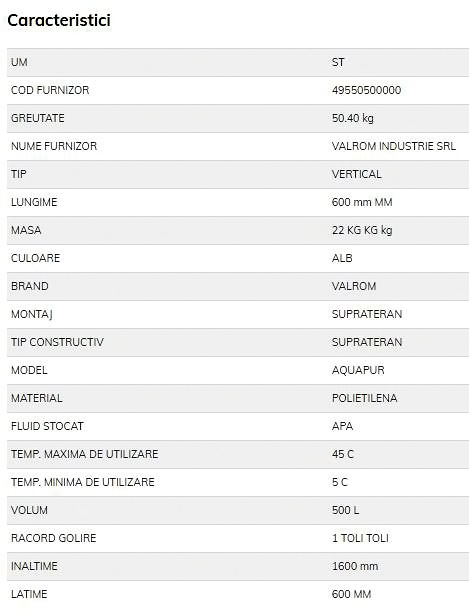 Rezervorul este de tip monobloc vertical, compact, alcatuit dintr-un strat exterior din polietilena, cu rezistenta mecanica buna, dintr-un strat intermediar de polietilena expandata cu rol anticondens si dintr-un strat interior din polietilena, continand compusi anorganici cu argint activ, avand caracteristici antimicrobiene. Este folosit pentru stocarea apei potabile.
