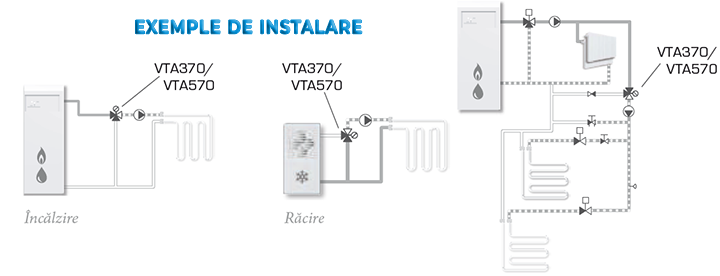Ventilele termostatice de amestec VTA sunt destinate pentru prepararea directă a apei calde menajere în sistemele cu sau fără pompă de recirculare, sisteme mici de încălzire prin pardoseală sau sisteme de încălzire cu sursă dublă de energie: cazan și panouri solare, cu funcţie anti-opărire.